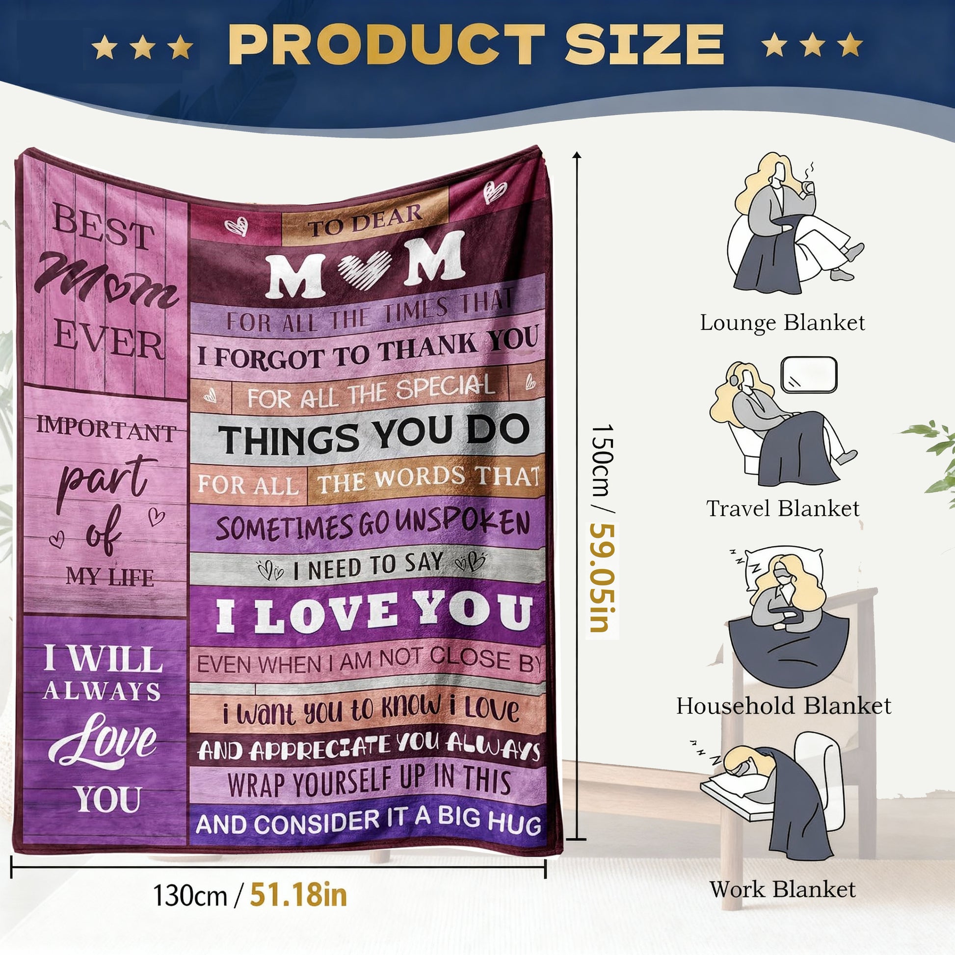 【The Ultimate Gift for Every Occasion】This blanket serves as the perfect present for all of mum's special moments - birthday celebrations, holiday gatherings, anniversary surprises, or simply to show your appreciation. Unlike generic gifts, this becomes a personal keepsake that grows more meaningful with time, just like your relationship with her.